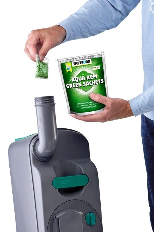 Ve vodě rozpustné chemické sáčky Thetford Aqau Kem Green Sachets nabízejí maximální komfort při použití a jistotu naprosto přesného dávkování. Použitá rozkladová chemie je účinná a přitom přátelská k životnímu prostředí.