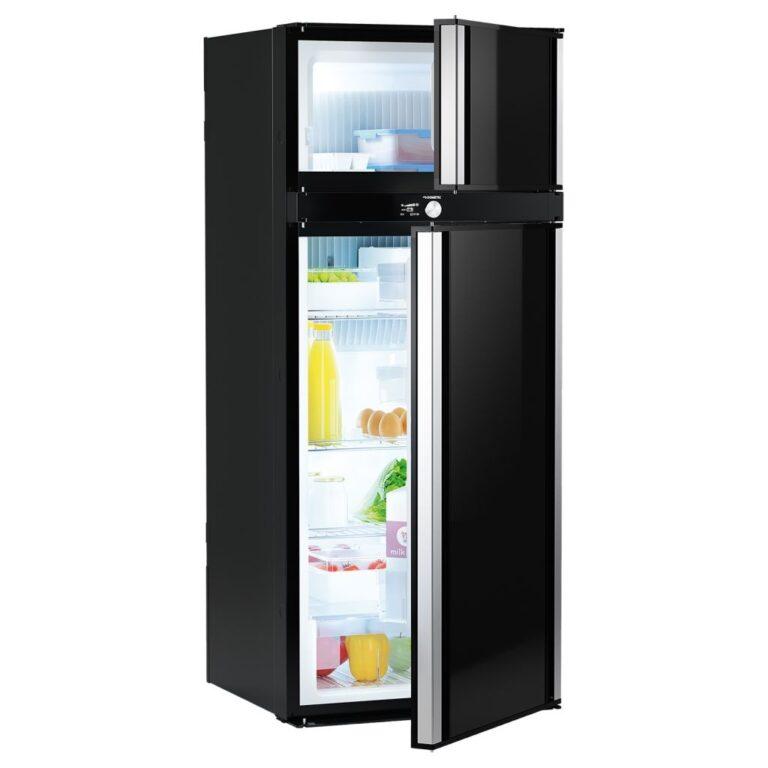 Vestavná absorpční lednice Dometic RMD 10.5/10.4 má speciální vychytávku, která vykouzlí úsměv na tváři každému majiteli karavanu a přívěsu, pro kterého je důležitý každý kousek prostoru. Díky patentovaným dveřním pantům mohou být dveře lednice otevírány na obě strany – doleva i doprava podle aktuální potřeby každého uživatele. Atraktivní design s elegantním hliníkovým úchytem po celé délce dveří lednice.