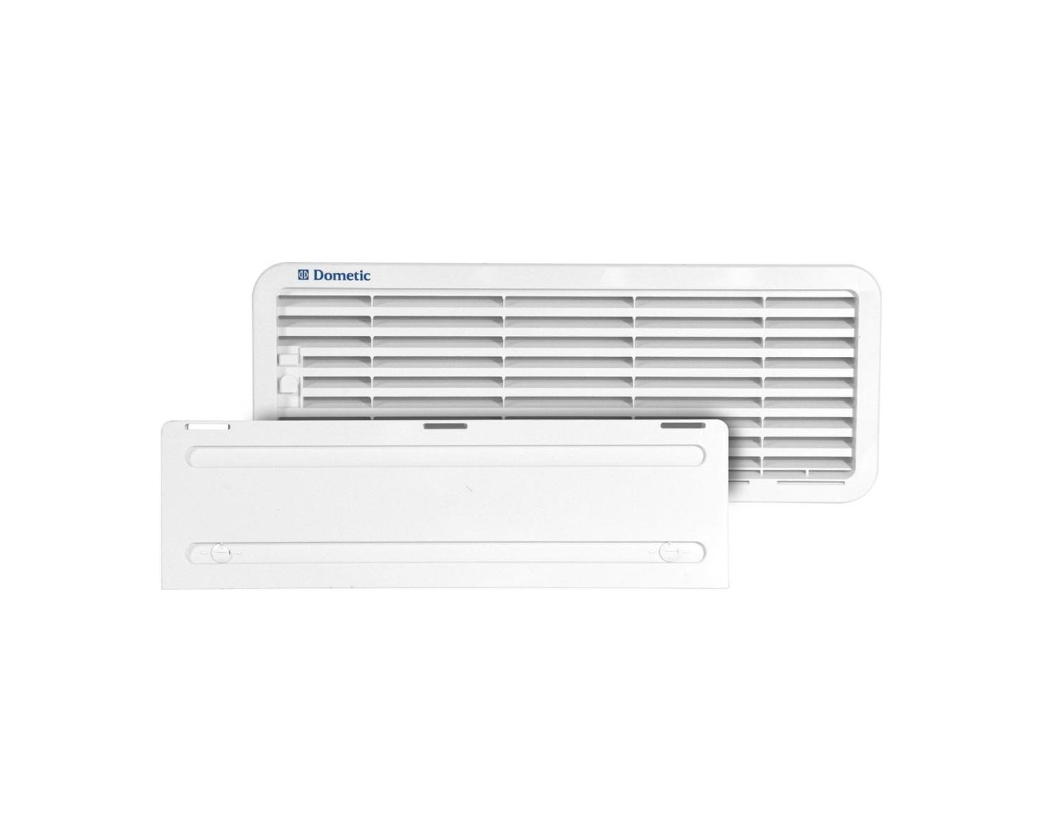 Spodní větrací mřížka pro odvod spalin z lednic Dometic. Součástí je zimní kryt, vývod, vestavný rám i moskytiéra proti vniknutí hmyzu.