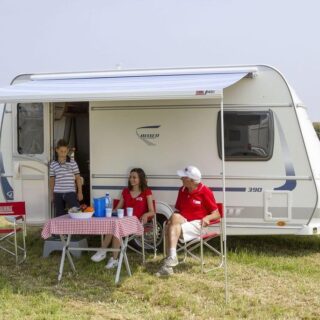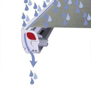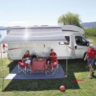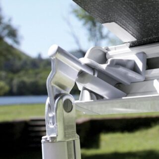 Markýza je tvořena hliníkovým pouzdrem, jenž představuje ochranu pro vinylové plátno, které je stočené uvnitř a které je ovládané klikou. Ta je součástí balení a s její pomocí se plátno snadno rozvine a poskytne kýžený přístřešek ke karavanu či obytnému vozu.