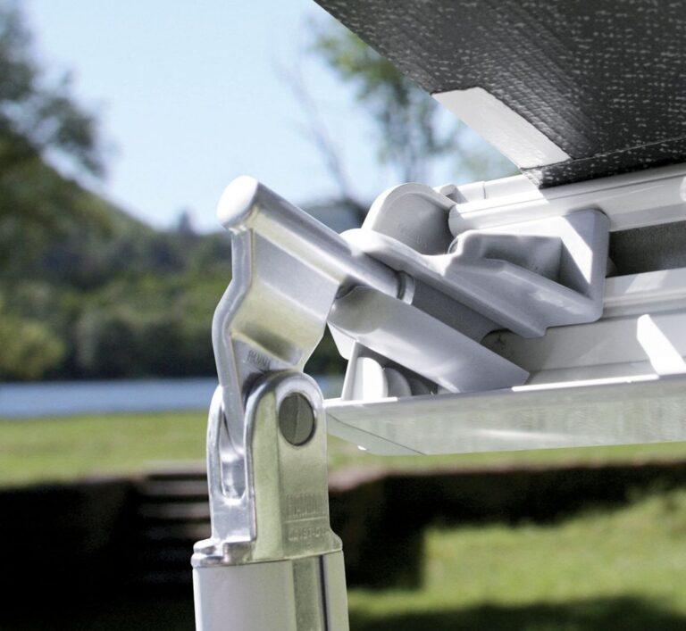 Součástí markýzy již jsou hliníkové adaptéry pro instalaci na rovnou stěnu. V případě instalace na rovný bok karavanu či obytného vozu není potřeba přikupovat žádný další adaptér.