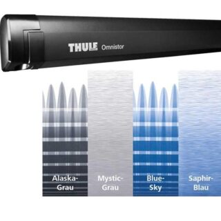 Markýza Thule Omnistor 5200 určená pro instalaci na boční stěnu karavanu či obytného vozu. Součástí balení jsou adaptéry pro instalaci na stěnu karavanu nebo obytného vozu. Markýzu je také možné zavěsit do kedrové lišty a přišroubovat ke stěně karavanu nebo obytného vozu.