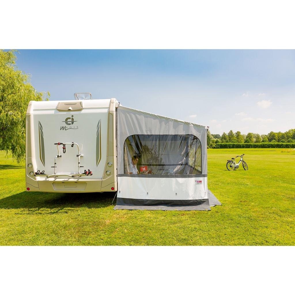 Boční stěna Fiamma Side W Pro pro lepší pocit soukromí pod markýzou Fiamma. Chrání vnitřek markýzy před větrem, slunečními paprsky. Vinylové plátno je vodoodpudivé, odolné vůči UV záření a lehce omyvatelné.