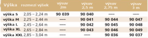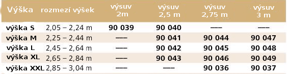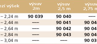 výsuv 2 m, výsuv 2,5 m, výsuv 2,75 m, výsuv 3 m