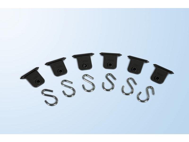 Sada šesti háčků pro vsunutí do 7 mm kedrové drážky v čele jakékoliv markýzy.