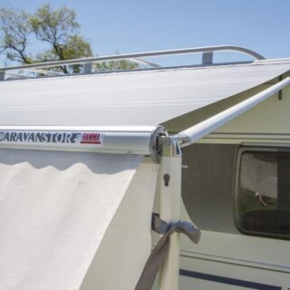 Markýza Fiamma Caravanstore z kategorie markýz ve vaku je snadno instalovatelná, pevná, elegantní, stylová a cenově dostupná markýza užívaná standardně na obytných přívěsech. Markýzu stačí nasunout do kedrové lišty a ta je tak připravená k použití během kratké chvíle. Vyztužený válec, který obsahuje podpůrné nohy a ramena, je odolný a ideální pro manipulaci jednou či dvěma osobami.