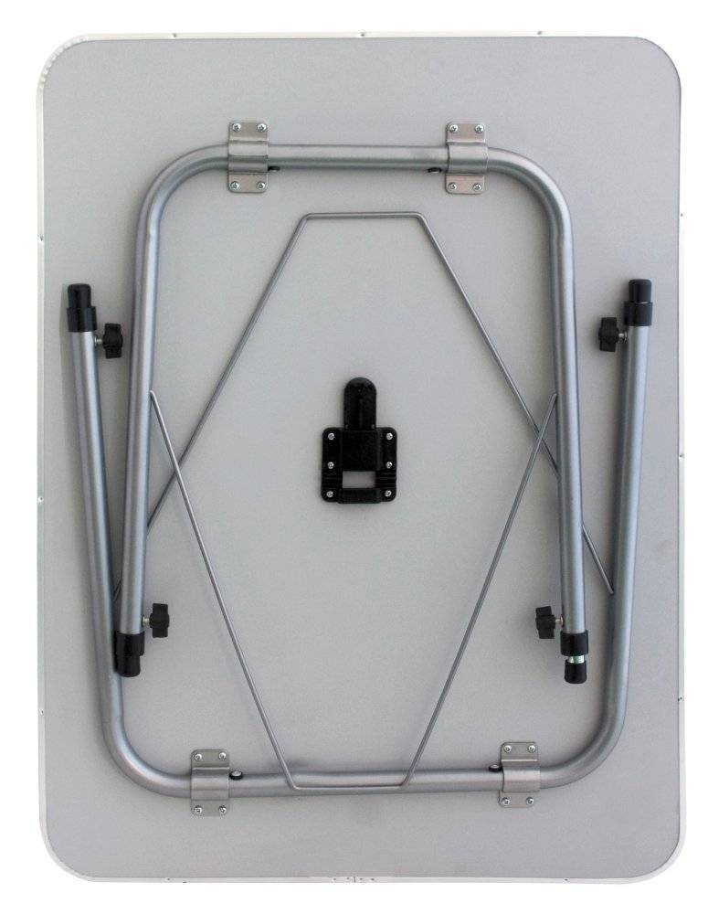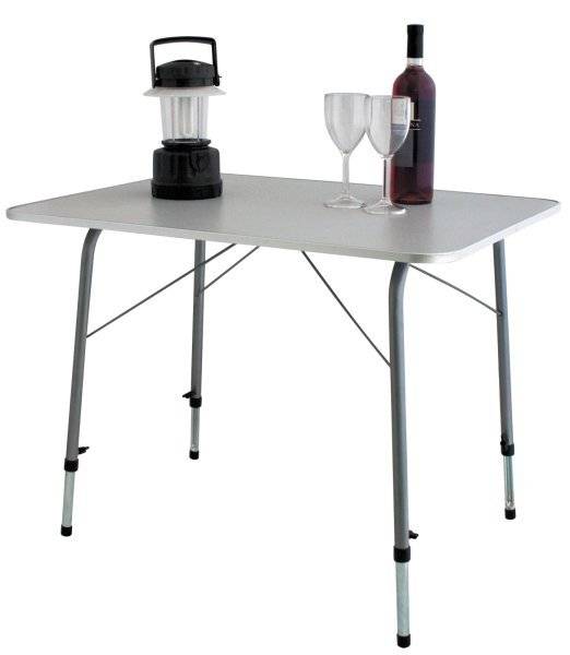 Kempingový stůl Cadiz M – jednoduchý skládací stůl určený pro každý výlet s karavanem. Výhodou je dobrá stabilita díky vzpěrám pod deskou stolu, každý výletník také ocení výškově nastavitelné nohy – snadno se pak vyrovnají terénní nerovnosti nebo se přizpůsobí různým výškám stolovníků.