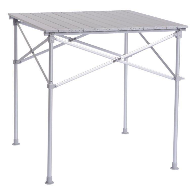 Velmi lehký hliníkový kempingový stůl se skládací konstrukcí a rolovací deskou od značky Frankana Freiko.