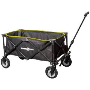Skládací víceúčelový vozík od značky Brunner s robustní ocelovou konstrukcí a prostornou přepravní plochou.