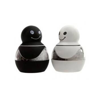 Unikátní solnička a pepřenka s mlýnkem 2v1 je zhotovena z odolného polykarbonátu potaženého silikonem, který je příjemný na dotyk. Pepřenka nezabere moc místa a budete ji mít vždy po ruce. Její veselý vzhled potěší děti i dospělé. Produkt je k dispozici v černé a bílé barvě.
