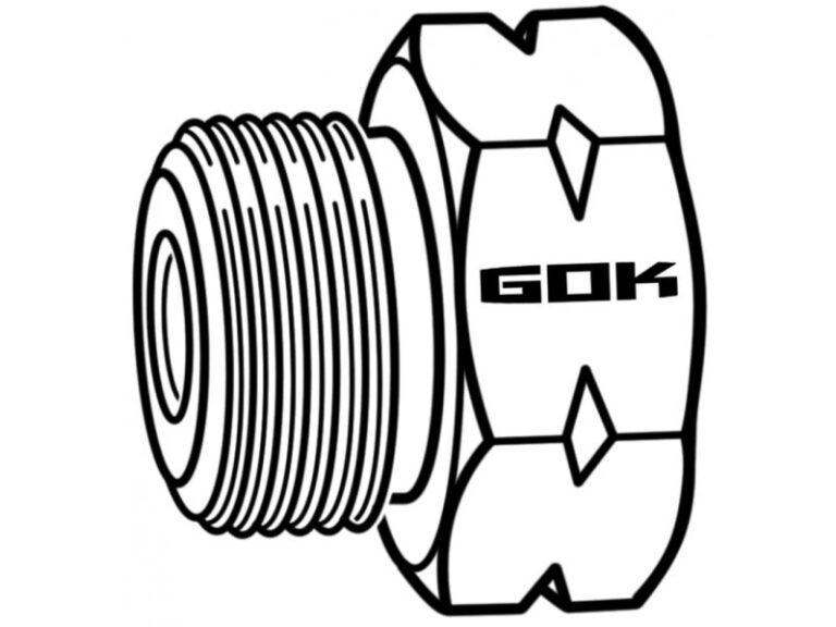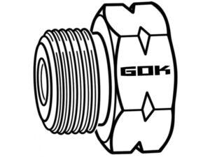 Mezikus GOK pro připojení německého regulátoru tlaku na plynovou láhev používanou v ČR a dalších evropských státech. Redukce z vnějšího závitu KLF (G. 12) na vnitřní závit W 21.8 x 1/14 LH. Součástí dodávky je gumové těsnění, které lze objednat i samostatně.