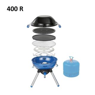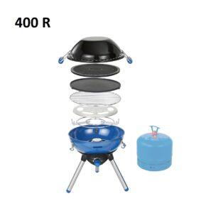 - Party Grill 400 R – gril s piezo zapalováním a připojením pro R 904, R 907, butan nebo propan plynové lahve. Balení obsahuje víko s možností Wok, stojan, rošt, oboustrannou a kontaktní grilovací desku, vak. Při dokoupení 50 mbar regulátoru možno napojit na běžnou plynovou bombu.