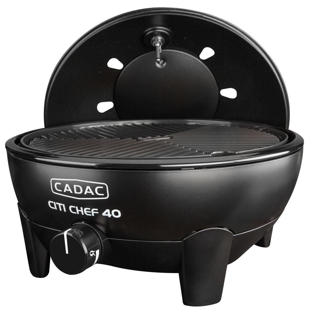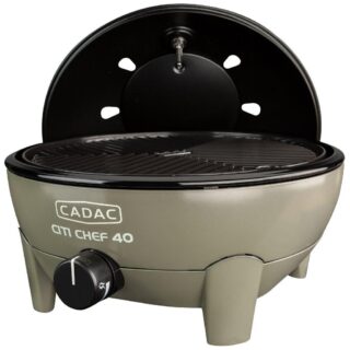 Robustní a kompaktní stolní gril CADAC Citi Chef 40 lze pohodlně přenášet. Hliníkový rošt grilu s keramickým povrchem „GreenGrill“ je vybaven deflektorem pro rovnoměrné rozložení tepla. Odkapávací miska zapadá do hořáku a snadno se odnímá a čistí. Součástí balení je pochromovaný stojan na hrnce, který umožňuje použití hrnců, paella pánve či pizza kamene.
