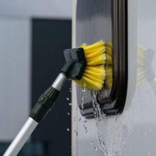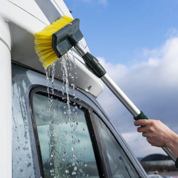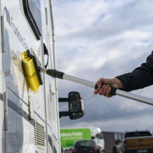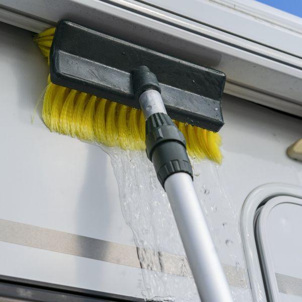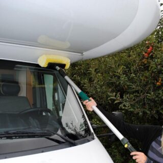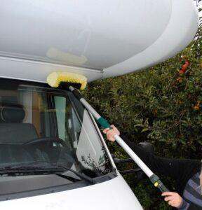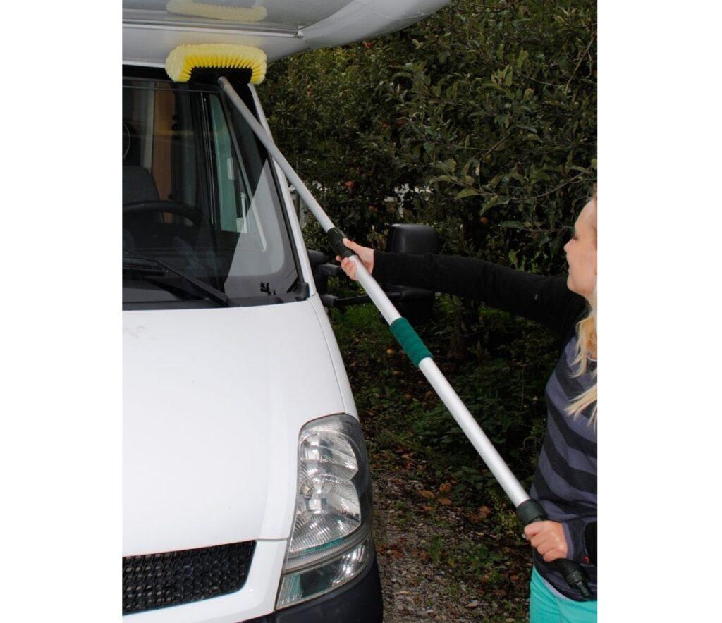 Všestranný mycí kartáč Frankana má univerzální kartáčovou hlavu. Snadno dosáhne do rohů karavanu. Mycí hlavice je opatřena super měkkými štětinami pro jemné a důkladné vyčištění. Zesílená teleskopická hliníková tyč, vyztužená rukojeť (19 mm) a s praktickým vypínačem.
