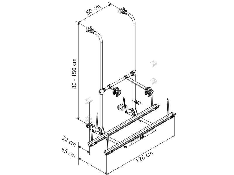 Pro instalaci na obytný vůz Hymer s originálními přípravami pro motnáž nosiče na zadní stěnu je potřeba objednat Hymer adaptér.