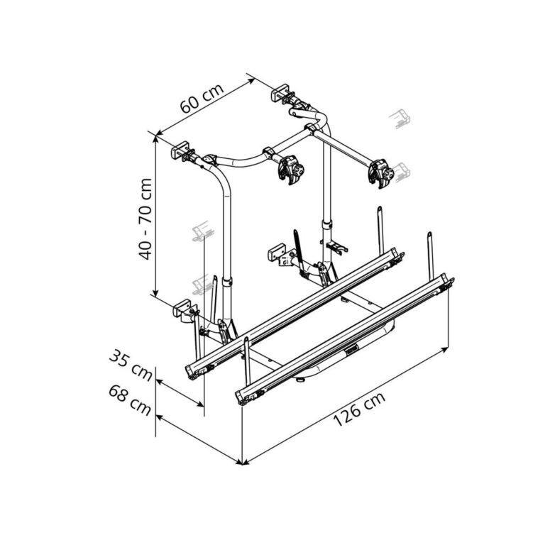 Nosič je tvořen bytelnými hliníkovými profily a ramena nosiče jsou schopna uchytit rám kola až o průměru 70 mm.
