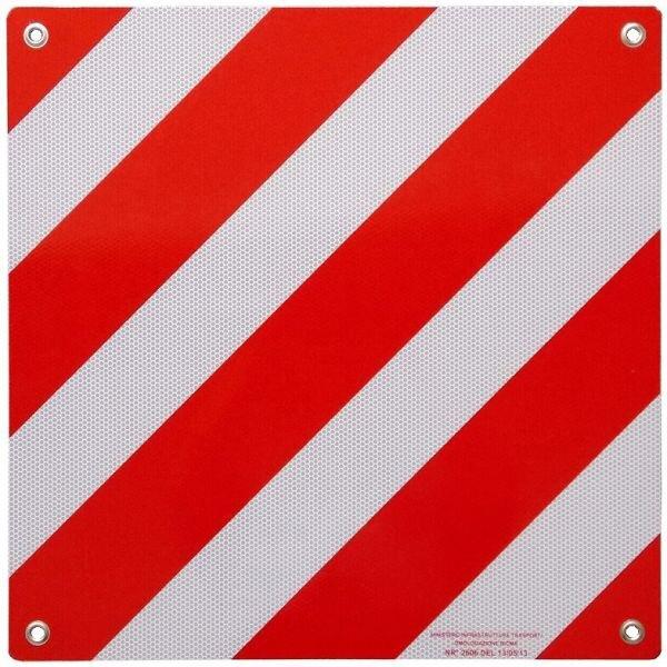 Výstražný terč hliníkový 50 x 50 cm pro Itálii povinný při přepravě nákladu přesahujícího délku vozidla. Výstražný terč je potažený speciální reflexní fólií a má 4 upevňovací otvory, takže splňuje požadavek italského silničního zákona platného od 1.1.1995. Hliníkový terč je v Itálii povinný pro převoz kol na jakémkoli dopravním prostředku.